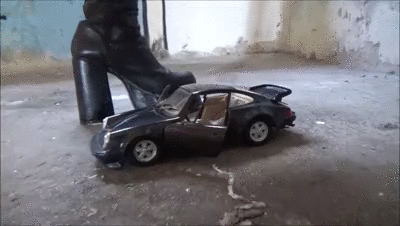 Lady Asmodina could not understand why and how her slave played with toys while he was an adult. She wanted him to stop it so she made him stop it by crushing his hands with her high heels and then using the same high heels to trample and crush the toy train while her slave watched. He tried to beg her not to but she ignored his pleas and went on doing her thing.
